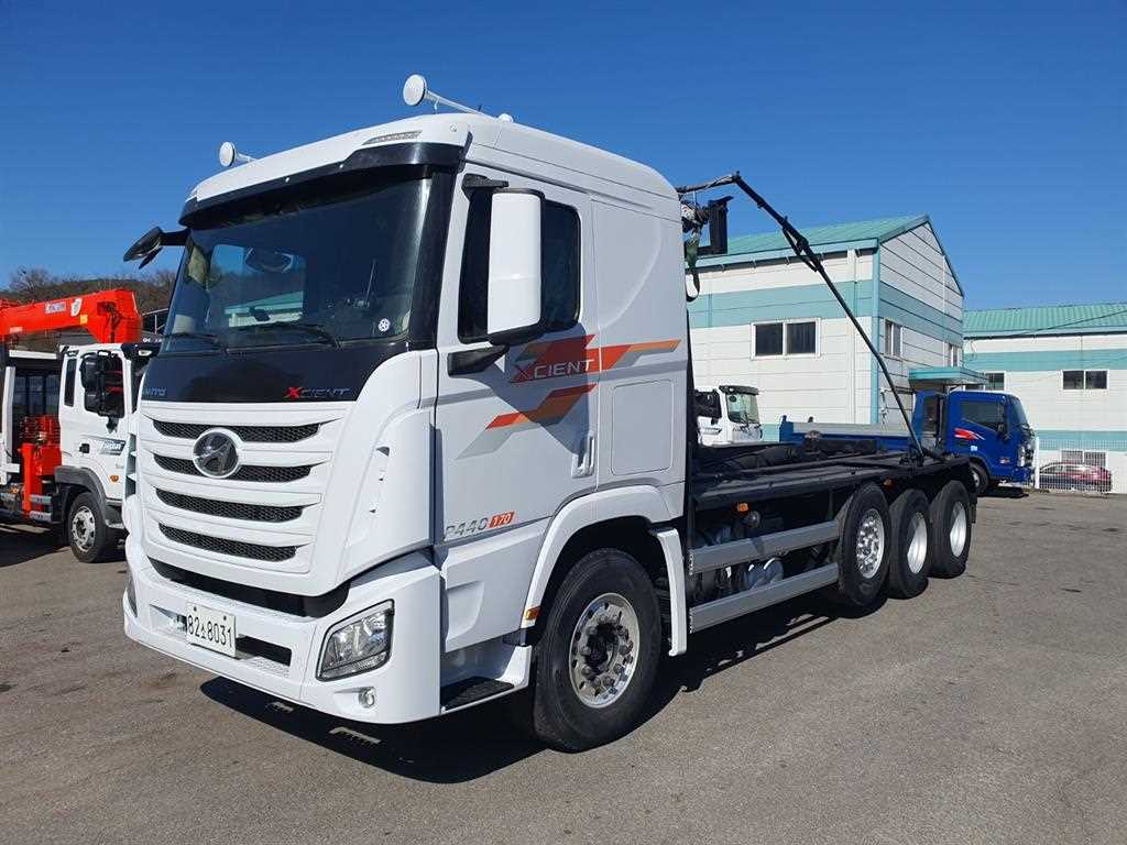 엑시언트 24톤 암롤트럭 1*3축 앞축 자동덮개 박스없이검사가능 수동 리타드 440마력 계기판교체 실주행 50만km