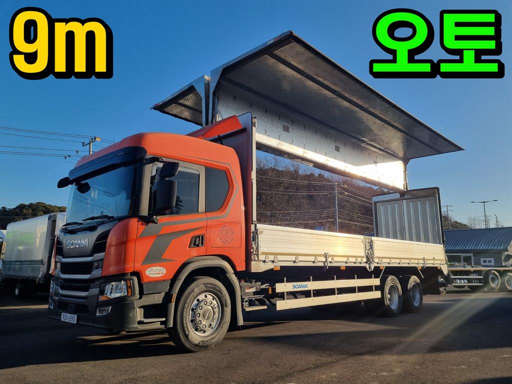스카니아 8.5톤 윙바디 적재함 9m 후축 오토미션 280마력 실주행 26만km 길이 9000 폭 2400 높이 2500